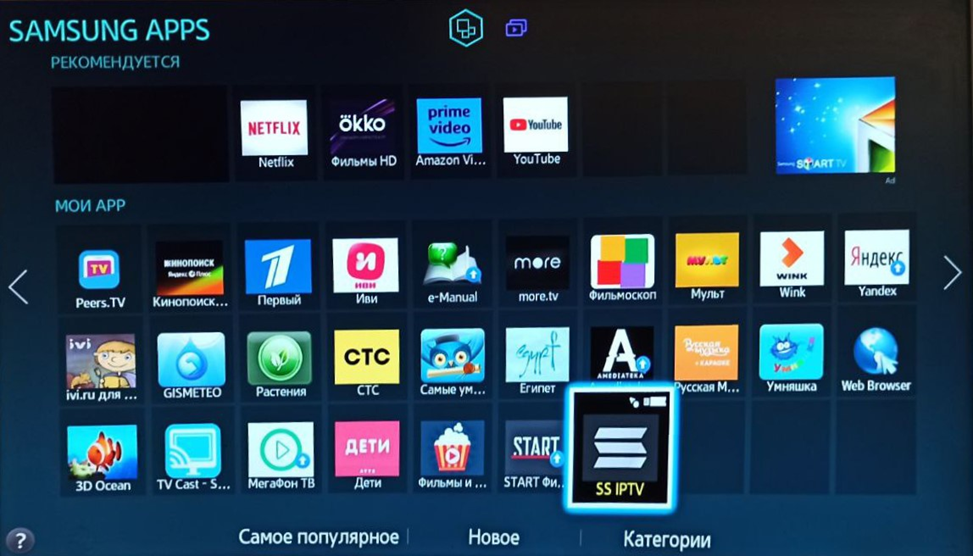 5. Включаем телевизор, на стартовом экране переходим в SSIPTV.